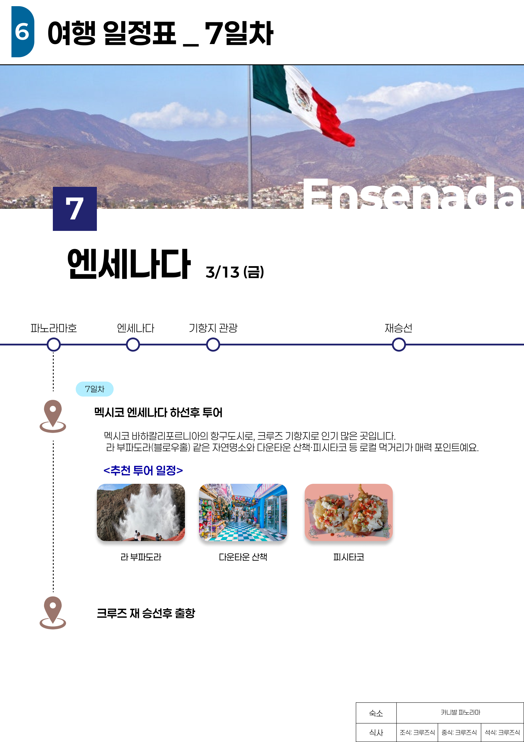 호텔 크루즈 식사 [조식]호텔식 [중식]크루즈식 [석식]크루즈식 -