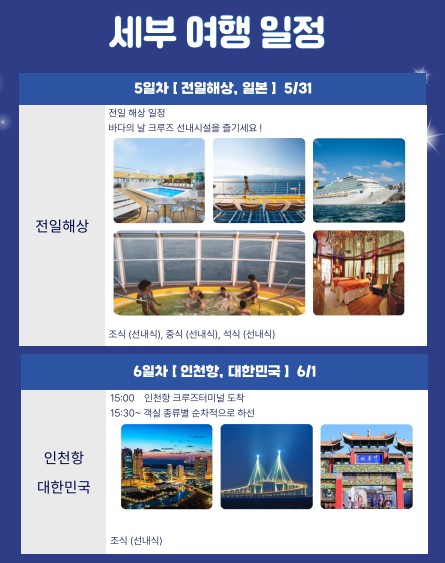 전일정선내 뷔페 및 레스토랑 정찬식사 제공