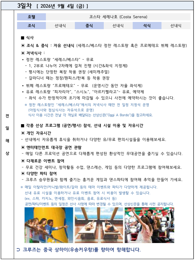 '코스타 세레나호'로 떠나는 4박 6일 한국, 중국, 일본 크루즈 삼국지