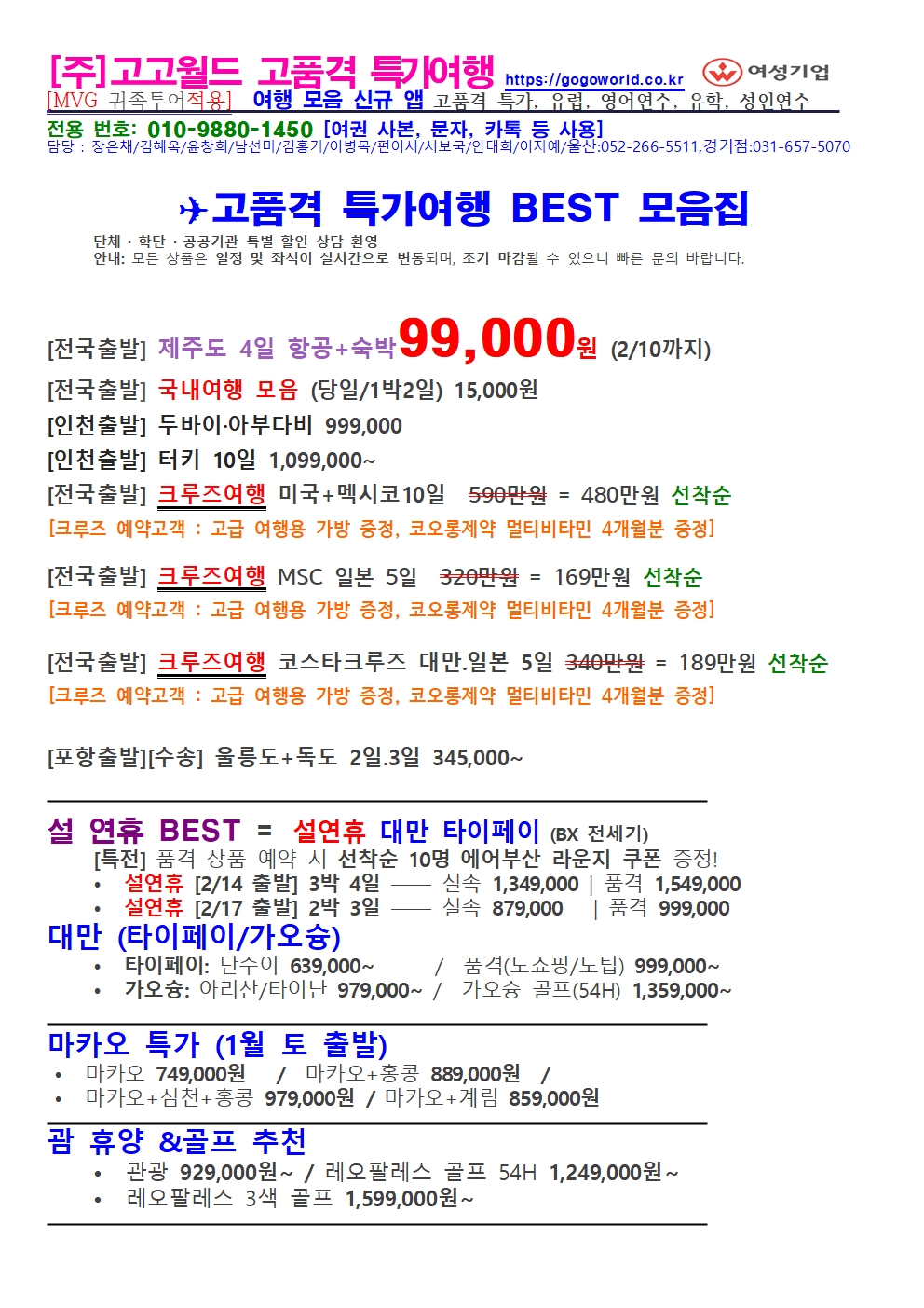 [전국출발] ✈ 30가지 인기상품을 한눈에! 고품격 · 특가여행 BEST 모음