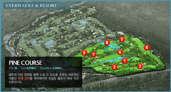 소개 : 에버리스골프클럽은 [LAKE코스(총9홀), SAEBYUL코스(총9홀), PINE코스(총9홀)]3개의 골프코스갖춘 총27홀의 회원제 명문골프클럽입니다.