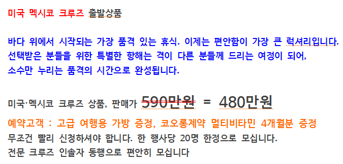 · 크루즈 객실 업그레이드 비용